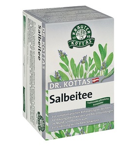 Dr. Kottas Salbeitee ist ein traditionelles pflanzliches Arzneimittel zur symptomatischen Behandlung bei leichten Verdauungsbeschwerden wie Blähungen, zur Linderung bei starkem Schwitzen, zur symptomatischen Behandlung von Entzündungen im Mundund Rachenraum, zur Unterstützung der Heilung kleinflächiger oberflächiger Hautentzündungen. Wirkstoff: Salbeiblätter (Salviae folium)ART DER ANWENDUNG: Pro Tasse (125 ml) 1 Filterbeutel mit kochendem Wasser übergießen, 5-10 Minuten zugedeckt ziehen lassen. Danach Filterbeutel ausdrücken, den Tee abkühlen lassen.DOSIERUNG: Zur symptomatischen Behandlung bei leichten Verdauungsbeschwerden wie Blähungen, zur Linderung bei starkem Schwitzen: Für Erwachsene und Jugendliche ab 12 Jahren: 3 mal täglich1 Tasse Tee lauwarm, schluckweise trinken. Der Tee kann nach Geschmack gesüßt werden.Zur symptomatischen Behandlung von Entzündungen im Mund und Rachenraum: Für Erwachsene, Jugendliche und Kinder über 6 Jahren: 3-4 mal täglich mit 1 Tasse Tee lauwarm gurgeln.Zur Unterstützung der Heilung kleinflächiger oberflächiger Hautentzündungen: Für Erwachsene, Jugendliche und Kinder über 6 Jahren: 2-4 mal täglich eine saubere Kompresse mit dem Tee tränken und 20-30 Minuten auf die Haut auflegen.