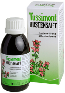 TUSSIMONT HUSTENSAFT ist rein pflanzlich und hilft bei trockenem Husten und Katarrhen der Atemwege im Verlauf von Erkältungskrankheiten. Für Kinder ab 2 Jahren geeignet.TUSSIMONT HUSTENSAFT verflüssigt zähen und gestauten Bronchialschleim, beschleunigt das Abhusten des Sekrets und lindert den Hustenreiz.- hustenstillend- schleimlösend- gluten- und lactosefrei- rein pflanzlich- für Diabetiker geeignetDie Fluidextrakte von Thymianblättern und Senegawurzeln wirken schleimlösend, krampflösend und schleimfördernd. Das ätherische Thymianöl des Extraktes besitzt zusätzlich desinfizierende (antimikrobielle) Wirkung und beeinflusst vorteilhaft Magen- und Darmtrakt. Die Senegasaponine fördern die Sekretion der Bronchialschleimhaut und der Luftwege und können dadurch auch zähere Schleimpfropfen entfernen. Bitterorangenextrakt riecht aromatisch, schmeckt würzig bitter und dient zur Geschmacksverbesserung.TUSSIMONT HUSTENSAFT hilft bei trockenem Husten und Katarrhen der Atemwege im Verlauf von Erkältungskrankheiten.ART DER ANWENDUNG UND DOSIERUNGFalls vom Arzt nicht anders verordnet, nehmen Erwachsene und Jugendliche ab 12 Jahren im Akutfall alle 2 – 3 Stunden, bis zu 6 mal täglich, 2 Kaffeelöffel TUSSIMONT HUSTENSAFT. Kinder von 2 – 11 Jahren nehmen 4 mal täglich 1 Kaffeelöffel. Bei Abklingen der Beschwerden wird die Dosis entsprechend reduziert. Eine oftmalige Einnahme ist wesentlicher als die Einnahme einer größeren Menge, weshalb eine häufigere Einnahme in kürzeren Zeitabständen empfehlenswert ist.ZUSAMMENSETZUNG100 g TUSSIMONT HUSTENSAFT enthalten:10,0 g Thymianfluidextrakt3,0 g Senegawurzelfluidextrakt5,0 g BitterorangenfluidextraktAls Hilfsstoffe werden Saccharose 50,0 g, Gereinigtes Wasser, Ethanol 96 %, als FarbstoffZuckercouleur und als Konservierungsstoffe para-Hydroxy-benzoesäuremethylester undpara-Hydroxybenzoesäurepropylester eingesetzt.Gebrauchsinformation: Tussimont HustensaftNebenwirkungen, Wechselwirkungen und sonstige wichtige Informationen: siehe Gebrauchsinformation