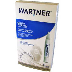 WARTNER® Stift gegen WarzenSichtbare Ergebnisse schon nach 1 WochePunktgenaue AnwendungGel im praktischen StiftGel-Methode mit Trichloressigsäure (TCA)Der Stift arbeitet durch die Trichloressigsäure wie eine Art chemisches Peeling und schält die Warze Schicht für Schicht ab – schnell und effektiv.Das Gel wird auf die Warze aufgetragen.Die Trichloressigsäure zerstört das infizierte Gewebe, wodurch sich die tote Haut Schicht für Schicht ablöst.Nach der Entfernung der Warze bildet sich neue, gesunde Haut.Herkömmliche Tinkturen erfordern eine lange Anwendungsdauer und sind oft nicht ganz einfach und punktgenau aufzutragen. Der WARTNER® Stift gegen Warzen wurde mit dem Ziel entwickelt, genau in diesen Punkten Abhilfe zu schaffen. Der Stift basiert auf dem klassischen Ansatz der Tinktur, bei der die Warze schichtweise abgetragen wird. Durch das hochkonzentrierte, spezielle Gel, kann die Warze jedoch schnell entfernt werden. Gleichzeitig ermöglicht der Stift ein besonders präzises Auftragen.