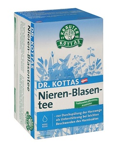 Dr Kottas Nieren-Blasentee ist ein Arzneitee mit den Wirkstoffen Zinnkraut, Brennesselblätter und Hauhechelwurzel. Diese Wirkstoffe fördern die Harnbildung. Dr. Kottas Nieren-Blasentee ist ein traditionelles pflanzliches Arzneimittel zur Durchspülung der Harnwege als Unterstützung bei leichten Beschwerden des Harntraktes. ART DER ANWENDUNG: Pro Tasse (125 ml) 1 Filterbeutel mit kochendem Wasser übergießen, 10 Minuten zugedeckt ziehen lassen. Danach Filterbeutel gut ausdrücken und den Tee lauwarm, schluckweise trinken. Der Tee kann nach Geschmack gesüßt werden. DOSIERUNG:Für Erwachsene und Jugendliche ab 12 Jahren: 3-4 mal täglich 1 Tasse Tee