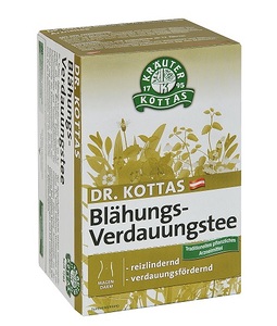 Dr. Kottas Blähungs-Verdauungstee ist ein Arzneitee mit den Wirkstoffen Käsepappelblätter, Pfefferminzblätter und Tausendguldenkraut. Die Schleimstoffe der Käsepappelblätter wirken reizlindernd und schleimhautschützend, das ätherische Öl der Pfefferminzblätter und die Bitterstoffe des Tausendguldenkrauts wirken verdauungsfördernd. Dr. Kottas Blähungs-Verdauungstee ist ein traditionelles pflanzliches Arzneimittel zur Anwendung bei milden Verdauungsstörungen wie Völlegefühl, Blähungen und bei vorübergehender Appetitlosigkeit.ART DER ANWENDUNG: Pro Tasse (125 ml) 1 Filterbeutel mit kochendem Wasser übergießen, 10 Minuten zugedeckt ziehen lassen. Danach Filterbeutel gut ausdrücken und den Tee lauwarm, schluckweise trinken. Der Tee kann nach Geschmack gesüßt werden. DOSIERUNG: Für Erwachsene und Jugendliche ab 12 Jahren: Mehrmals täglich 1-2 Tassen Tee Bei milden Verdauungsstörungen wie Völlegefühl und Blähungen nach den Mahlzeiten, bei Appetitlosigkeit vor den Mahlzeiten.