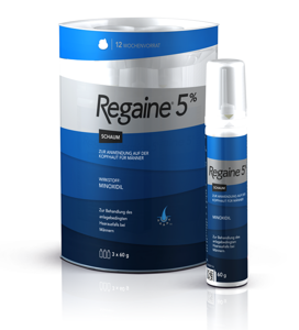 So wirkt REGAINE®In 95% der Fälle ist die Ursache für Haarausfall bei Männern anlagebedingt. Mit REGAINE® ist es möglich, dem Fortschreiten des Haarverlustes gezielt entgegen zuwirkenDer Wirkstoff Minoxidil erweitert die Blutgefäße und fördert so die Blut- und Nahrstoffversorgung des Haares. Vorhandenes Haar wird gestärkt und das Wachstum neuer Haare angeregtDie Haarqualität verbessert sich, der Haarverlust schreitet nicht weiter fortREGAINE® wurde speziell als Mittel gegen erblich bedingten Haarverlust entwickelt. Dank des wissenschaftlich anerkannten Wirkstoffs Minoxidil kann REGAINE® den Haarausfall stoppen und sogar das Wachstum neuer Haare stimulieren.Sichtbare Ergebnisse schon nach 12 WochenErblich bedingter Haarausfall entsteht durch eine verminderte Aktivität der Haarfollikel. Genau hier setzt das Haarwuchsmittel REGAINE® an. Mit dem Wirkstoff Minoxidil wird schon ab dem ersten Tag die Aktivität der Follikel angeregt und das Haarwachstum gefördert. Wird die Behandlung wie empfohlen durchgeführt, ist ein erster Therapieerfolg bereits nach 12 Wochen möglich.REGAINE® kann Haarausfall stoppen und Haarwuchs fördernDa das Haar Zeit braucht, um neu zu wachsen, wird es einige Wochen dauern, bis Sie die ersten Ergebnisse sehen. Bereits im zweiten Monat können sich jedoch neue Haare bilden. Am Anfang sind die neuen Haare noch fein und blass, doch mit der Zeit nehmen sie an Fülle und Stärke zu. Ab diesem Zeitpunkt sollten Sie auch eine Verlangsamung Ihres Haarausfalls wahrnehmen können. Viele Männer sehen bereits nach 12 Wochen mehr und kräftigere Haare.REGAINE® MÄNNER SCHAUM – so einfach geht’sVerwenden Sie REGAINE® MÄNNER SCHAUM 2-mal täglich – am besten morgens und abends. Platzieren Sie REGAINE® MÄNNER SCHAUM anfangs möglichst sichtbar, sodass Sie die Anwendung nicht vergessen. Die ersten Ergebnisse sind schon nach 12 Wochen sichtbar!Produktinformation: Regaine Schaum für MännerNebenwirkungen, Wechselwirkungen und sonstige wichtige Informationen: siehe Gebrauchsinformation