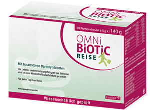 Reiselust statt UrlaubsfrustFür wen ist OMNi-BiOTiC® REISE geeignet?Bei Auslandsaufenthalten kann das Verdauungssystem durch äußere Einwirkungen unterschiedlichster Art (ungewohntes Essen, veränderter Tagesrhythmus) aus dem Gleichgewicht geraten. Unangenehmer wird es, wenn durch den Genuss von Wasser, Eiswürfeln oder auch nur Salaten und ungeschältem Obst fremde Keime in unser Verdauungssystem geraten – und der Darm versucht, diese Eindringlinge wieder los zu werden.Während die häufigsten Durchfallerreger, nämlich alle ETEC Stämme, nur unangenehm sind, aber selbstlimitierend (d.h. dass die Keime sich selbst mit dem Durchfall ausscheiden), ist eine Infektion mit Salmonellen, Shigellen und Campylobacter sehr viel problematischer.Daher sollte man neben allen anderen Urlaubsvorkehrungen nicht vergessen, auch den Darm auf die Reise vorzubereiten – Experten empfehlen dafür spezielle Multispezies-Synbiotika.Richten Sie sich bei der Auswahl des Essens nach der Empfehlung „cook it – peel it – or forget it!“ (Kochen Sie Ihr Essen – schälen Sie es – oder lassen Sie es bleiben!).Kleine Länder-Bakterien-Kunde:Ägypten: Der Klassiker – bis zu 92% der Besucher kommen mit Durchfällen von ihrer Nilkreuzfahrt zurück.Türkei: Auch das schönste Hotel schützt nicht vor Salmonellen. Entscheidend sind die Hände des Personals! Eigene Hygieneregeln beachten: häufig gründlich die Hände waschen.Ferner Osten: Achten Sie auf das „Plopp“ beim Öffnen einer Wasserflasche. Wenn Sie das nicht hören, wurde eine alte Flasche mit Leitungswasser befüllt (Achtung auch bei Eiswürfeln!.Mittelmeerländer und oft auch Osteuropa: Niemals Wasser aus der Leitung trinken!Karibik: Nur essen, was gut gekocht, noch heiß und vollkommen „durch“ ist – kein Fleisch oder Fisch roh!Italien: Campylobacter-Arten lauern bereits in den oberitalienischen Seen, beim Schwimmen den Mund geschlossen halten!Wie funktioniert OMNi-BiOTiC® REISE?In OMNi-BiOTiC® REISE sorgen sieben speziell ausgewählte Bakterienstämme und die hohe Anzahl von 5 Milliarden hochaktiven "Helfern" (Darmbakterien) pro Portion dafür, dass Sie jeden Tag Ihrer Reise genießen können. Eine herausragende Besonderheit von OMNi-BiOTiC® REISE ist die Matrix, in welche die Bakterien eingebettet sind: Enzyme und Ballaststoffe kurbeln die Aktivität der synbiotischen Helfer massiv an und garantieren deren Überleben in der feindlichen Umgebung von Magen und Zwölffingerdarm – ganz ohne chemische Hilfsmittel wie Kapsel oder Lackierungen.Wie wird OMNi-BiOTiC® REISE angewendet?Am besten beginnen Sie schon einige Tage vor der Reise, täglich morgens vor dem Frühstück 1 Beutel OMNi-BiOTiC® REISE (= 5 g) einzunehmen. Das Pulver in Wasser, Milch, Tee oder Joghurt einrühren, mindestens 1 Minute Aktivierungszeit abwarten, nochmals umrühren und dann trinken. Diese Vorgangsweise während der gesamten Reise fortsetzen.Wenn Sie an einer Fructoseintoleranz leiden, sollten Sie die Aktivierungszeit auf mindestens 30 Minuten verlängern. In dieser Zeit verstoffwechseln die Bakterien die gesamten Fructooligosaccharide. Es gelangt somit keine Fructose in den Darm.Zusammensetzung: Maisstärke, Maltodextrin, Pflanzenprotein, Fructooligosaccharide (FOS), Polydextrose, Bakterienstämme, Kaliumchlorid, Magnesiumsulfat, Enzyme (Amylasen), MangansulfatFrei von tierischem Eiweiß, Gluten, Hefe und Lactose. Geeignet für Diabetiker, Milchallergiker, Kinder, Schwangerschaft / Stillzeit.Gebrauchsinformation: Omni-Biotic ReiseNebenwirkungen, Wechselwirkungen und sonstige wichtige Informationen: siehe Gebrauchsinformation