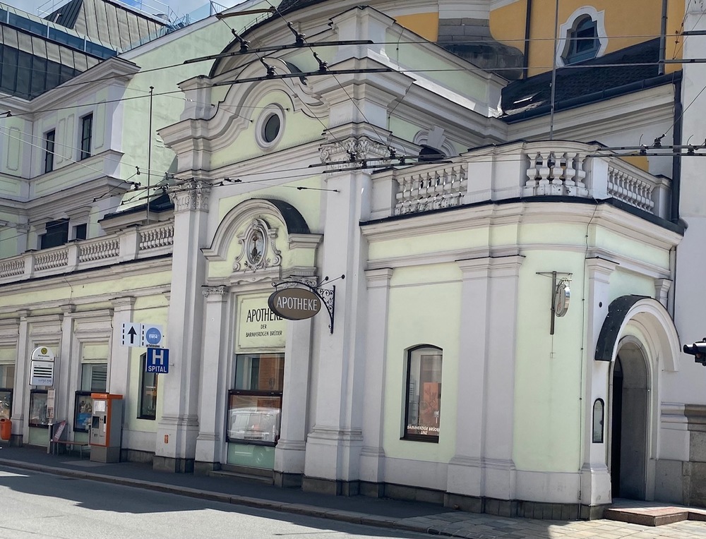 Tradition, Moderne, christliche Werte – als das trifft an der Ecke Rudigierstraße und Herrenstraße im Herzen von Linz zusammen. Mit dem Hofkammerdekret Nr. 72 vom 7. Jänner 1791 gestattete Kaiser Joseph II. den Barmherzigen Brüdern in Linz die Errichtung einer öffentlichen Apotheke, der damals erst vierten in der Stadt. 1352 Gulden und 23 Kreuzer kostete die Errichtung der Apotheke im alten Benefiziatsstöckel des ehemaligen Karmelitinnenklosters.