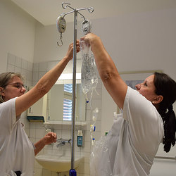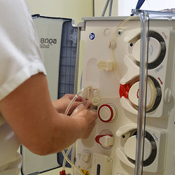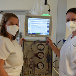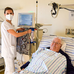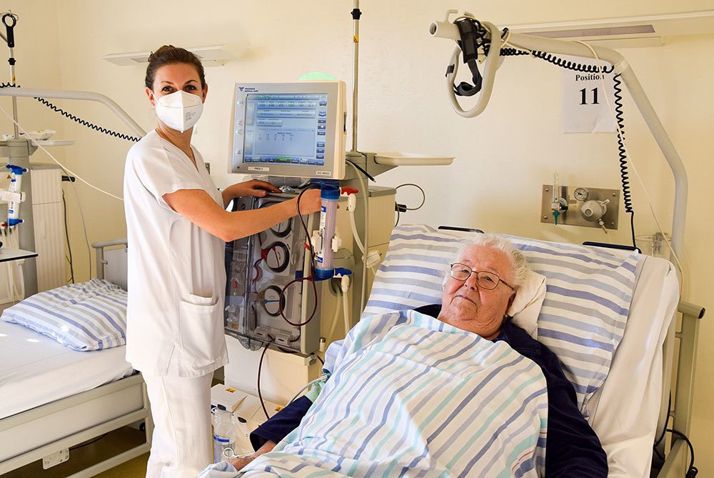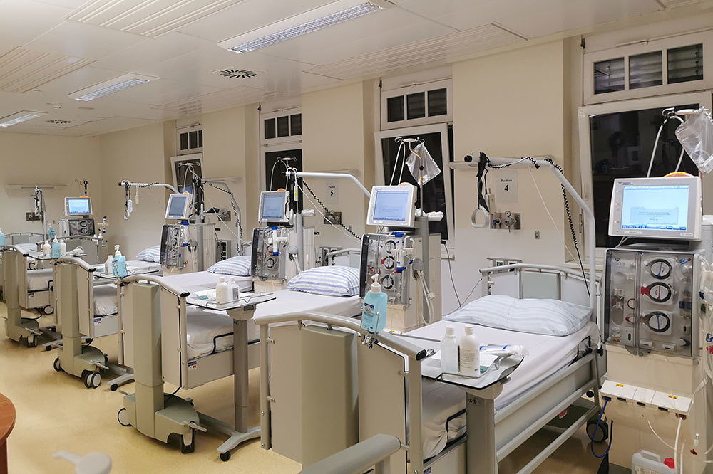 Seit November 2020 wird die Peritonealdialyse (Bauchfellanalyse) als Alternative zur Hämodialyse eingesetzt. Die Peritonealdialyse erfordert nur eine monatliche ambulante Kontrolle. Nach operativer Implantation eines Bauchdialysekatheters und ausreichender Einschulung, kann der Patient*in die Blutwäsche zu Hause, unter Einhaltung strikter Hygienestandards selbst durchführen. Bei dem für Herz-Kreislauf schonenderen Verfahren übernimmt das Bauchfell eine Art biologischen Filters. Die Bauchfelldialyse ist mit hoher Eigenverantwortung verbunden, Betroffene profitieren aber von der enormen Steigerung der Lebensqualität.