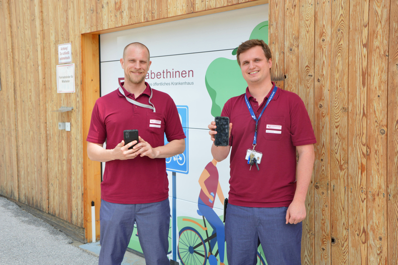 Sie sind schon clever unterwegs: Für Mario Webernig (links) und Christian Helm ist die Umadum-App, die seit einigen Wochen für EKH-Mitarbeitende zur Verfügung steht, eine lässige Sache.