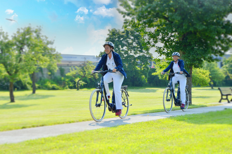Neben dem therapeutischen Ansatz setzt das Elisabethinen-Krankenhaus auch ein starkes Zeichen in Sachen Nachhaltigkeit. Bereits 2021 begann das Krankenhaus, E-Autos und EFahrräder