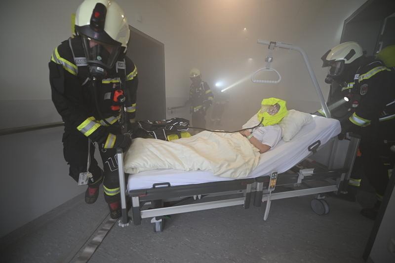 Das Feuer wurde durch einen technischen Defekt auf der chirurgisch-orthopädischen Bettenstation im zweiten Obergeschoss simuliert. Dabei handelte es sich um die Station 2C, die im letzten Jahr revitalisiert wurde und im Juni in Betrieb gegangen ist. Um erste Ordnung in das hektische Treiben zu bringen, wurden in der Erstphase richtungsweisende und prioritäre Entscheidungen zum Verbleib und Abtransport der PatientInnen gesetzt. Das wurde durch ein Zusammenwirken des „Erstchefs“ (Medizinische Verantwortung) und dem Einsatzleiter der Berufsfeuerwehr Klagenfurt ermöglicht. Im Anschluss erfolgte die geordnete Evakuierung der Station, was sich im Ernstfall als besonders heikel herausstellen kann.