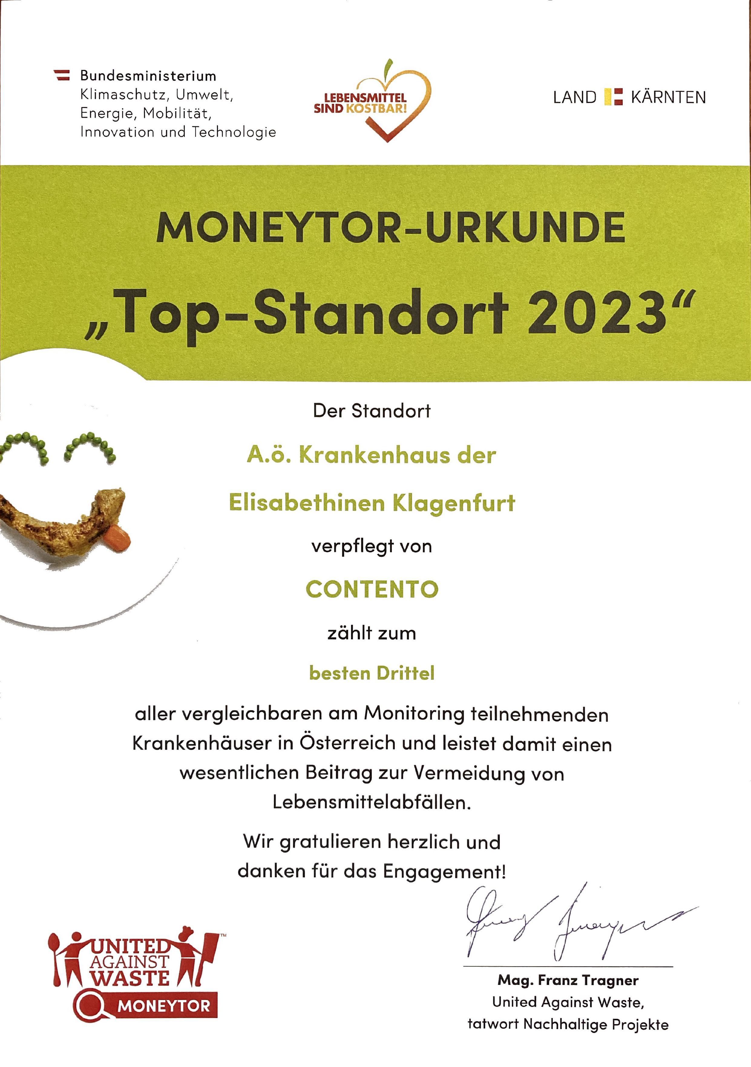Die größten Einsparpotenziale bei vermeidbaren Lebensmittelabfällen in der Außer-Haus-Verpflegung liegen im Gesundheitswesen. Doch insbesondere in diesem Bereich sind die Rahmenbedingungen besonders herausfordernd. Ein engagierter Vorreiter ist das Elisabethinen-Krankenhaus Klagenfurt, das die Abfallmenge kontinuierlich gesenkt hat. Für die Verantwortlichen im Krankenhaus ist die Teilnahme an der Initiative „Nix übrig für Verschwendung“ – einer Aktion von United Against Waste – längst Pflicht. Das Elisabethinen-Krankenhaus beteiligt sich in Zusammenarbeit mit seinem Kooperationspartner CONTENTO an der Initiative „United Against Waste.“