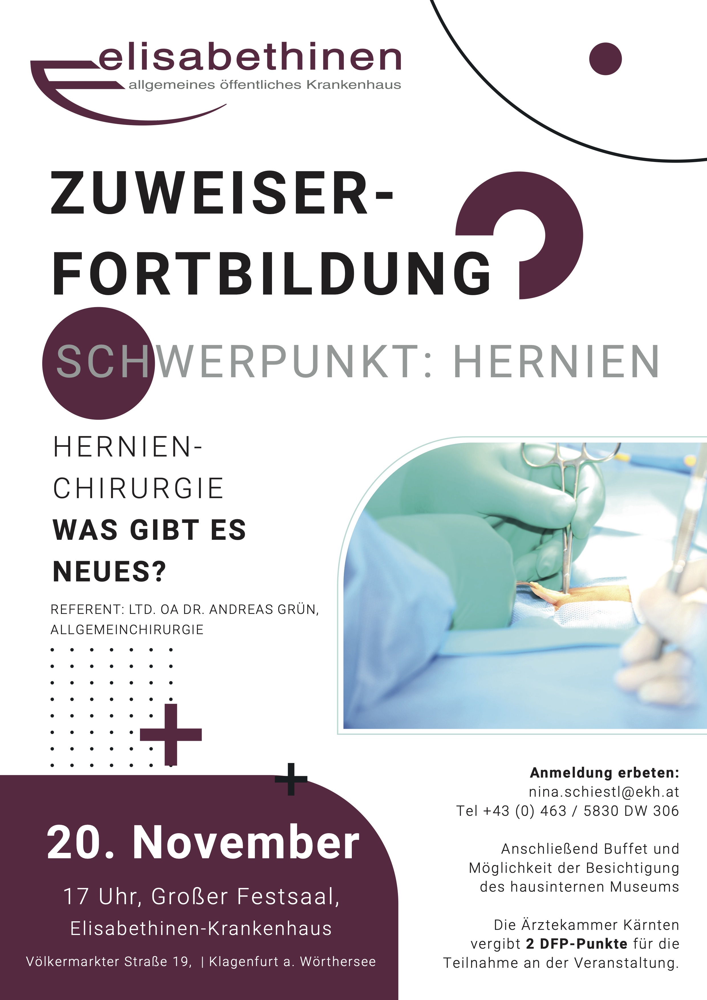 Die Ärztekammer Kärnten vergibt 2 DFP-Punkte für die Teilnahme an der Veranstaltung.