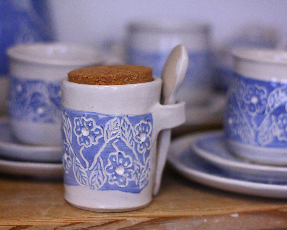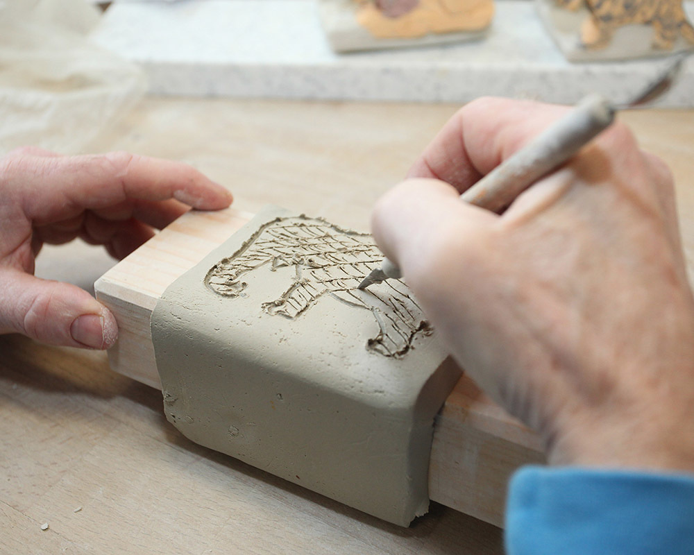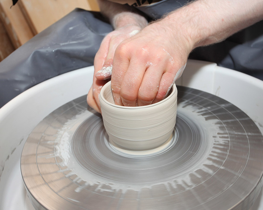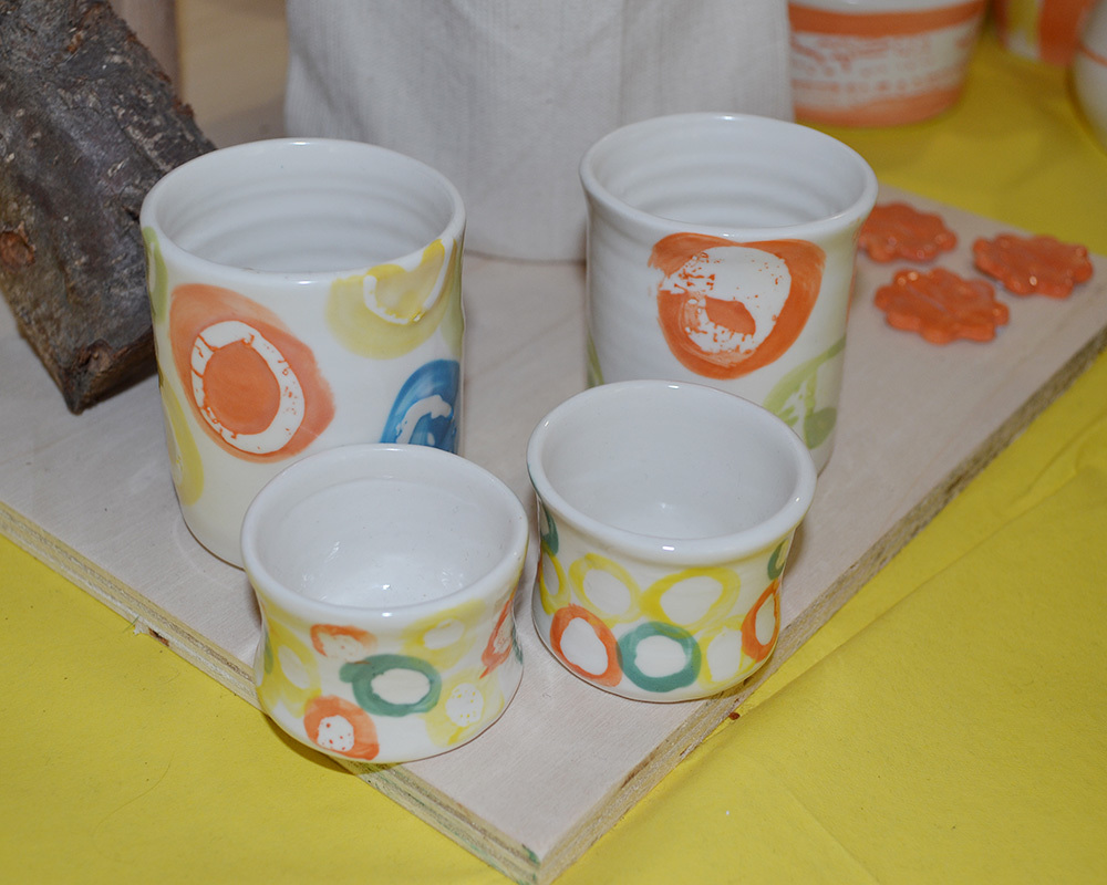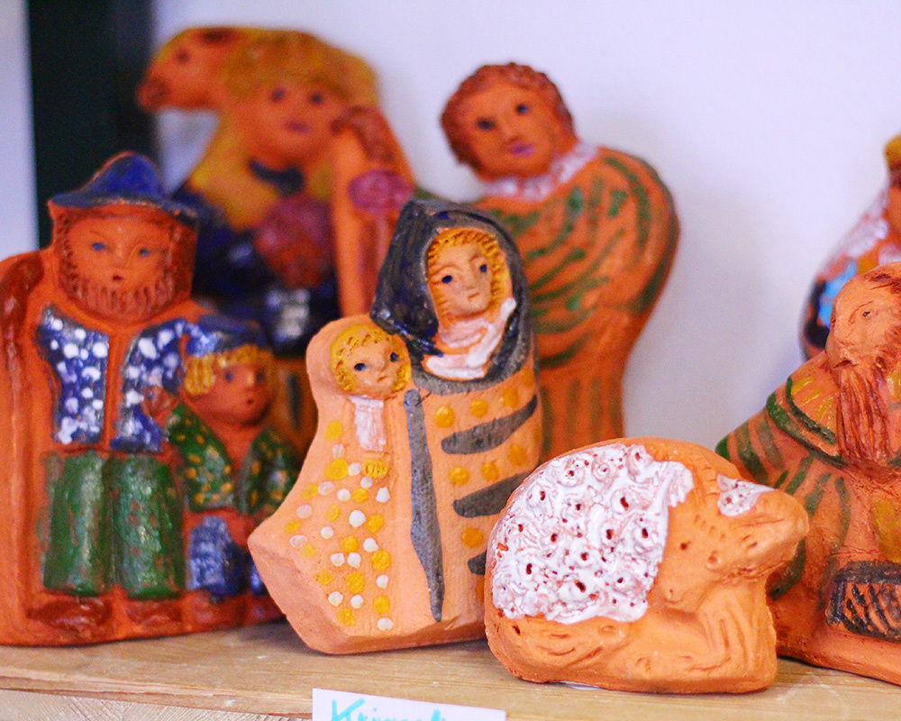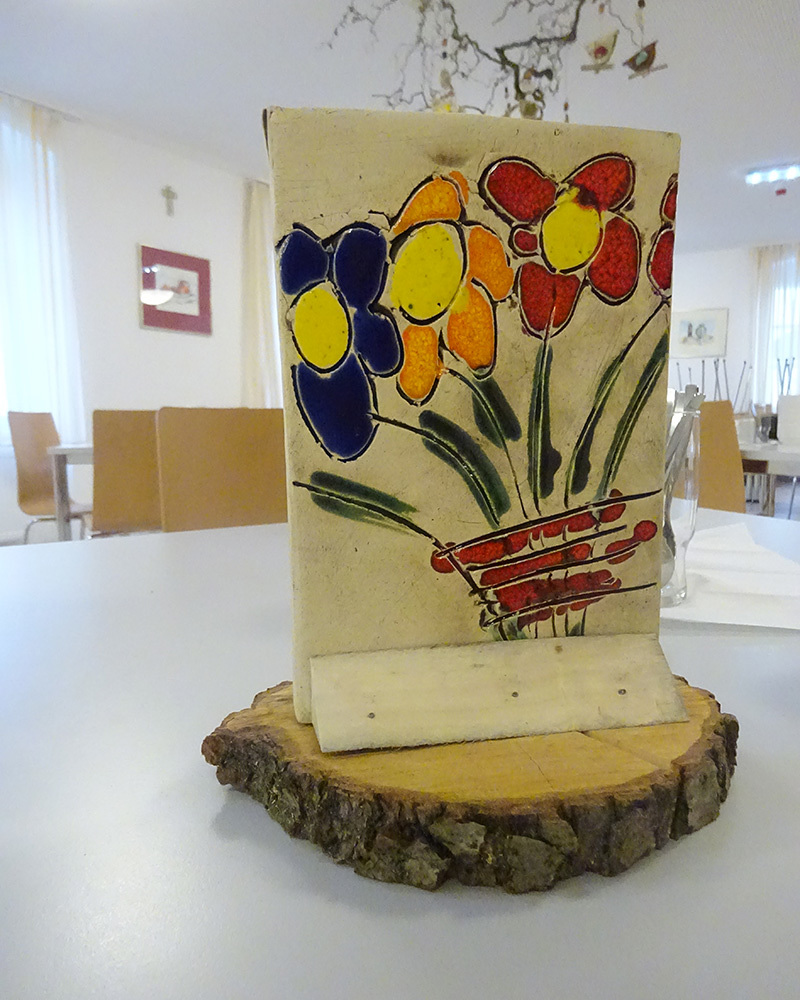 An den Lebenswelt-Standorten gibt es unterschiedliche Werkstätten, in denen mit unterschiedlichen Materialen gearbeitet wird. Zum Beispiel mit Keramik, Holz, Flechtmaterial und Textilien.