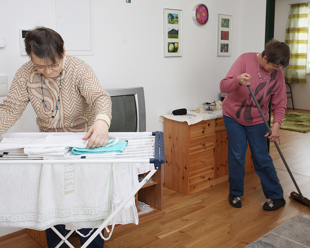 Die Bewohnerinnen und Bewohner nehmen im Rahmen ihrer Fähigkeiten an den Alltagsarbeiten teil: