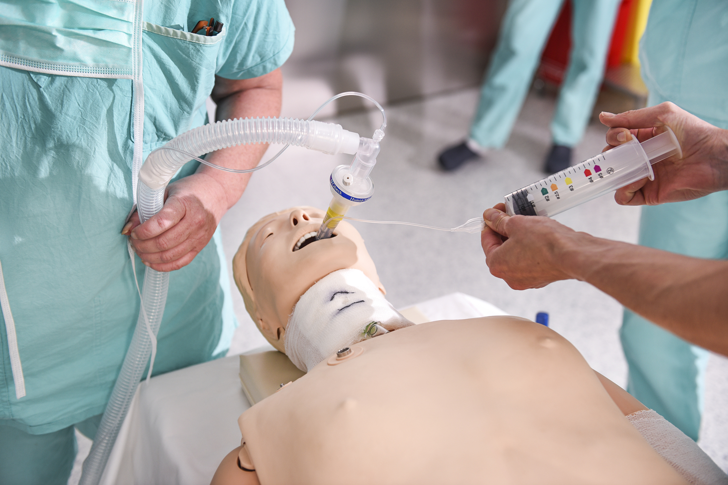 Das Simulationszentrum verfügt über ein breites Spektrum an Equipment, um die Situationen so realistisch wie möglich darzustellen. Als „Patienten“ stehen uns zwei lebensgroße High Fidelity Simulatoren zur Verfügung. Der Simulator kann alle wichtigen physiologischen Parameter darstellen und somit können alle notwendigen Therapieschritte durchgeführt werden.