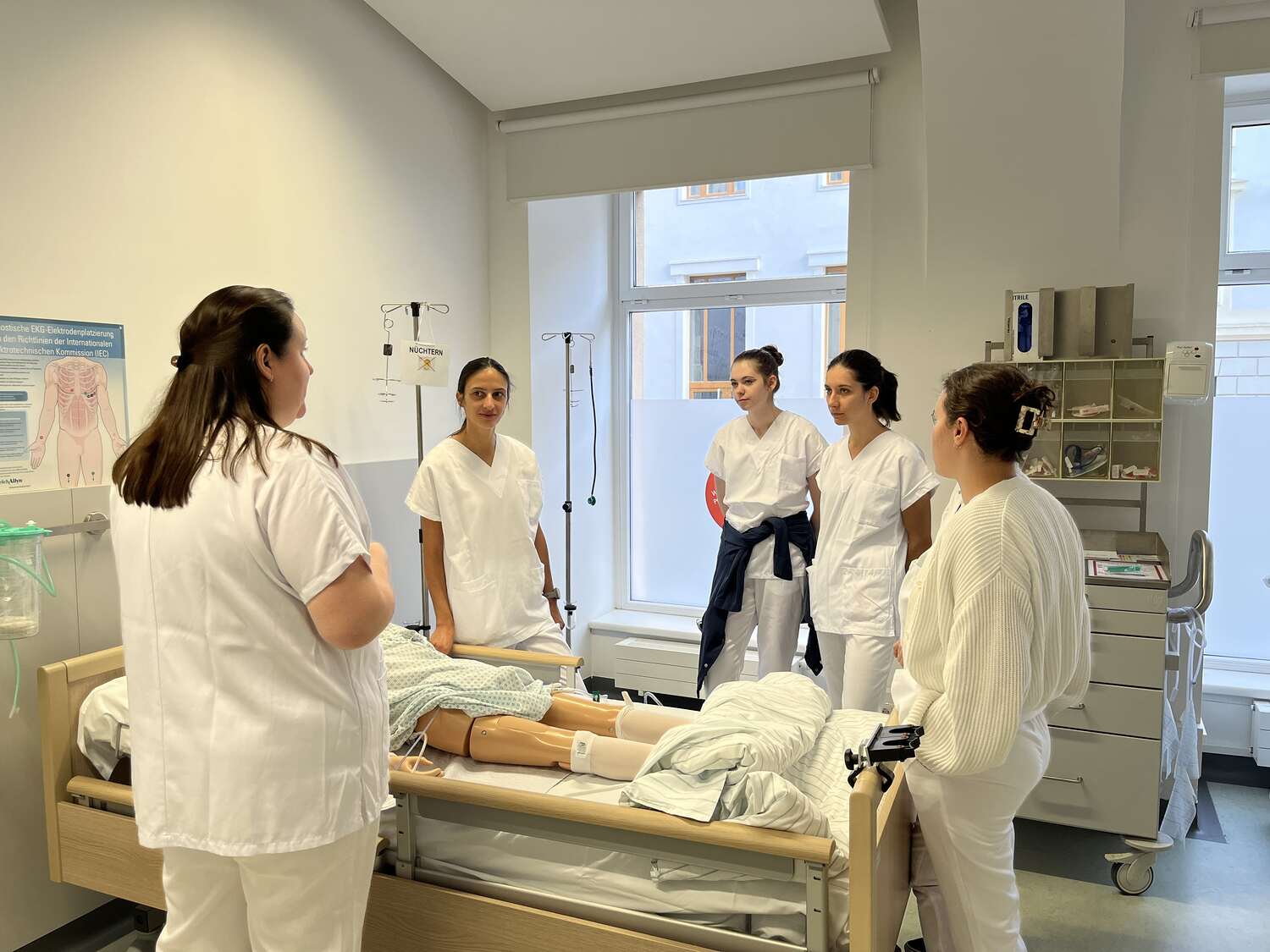 Fertigkeiten müssen vor dem Berufspraktikum trainiert und geübt werden. Fertigkeitentrainings und Erfahrungswerkstätten finden in den Skills Labs statt. Dort werden vor dem Praktikumsbeginn im geschützten Rahmen Fertigkeiten wie zum Beispiel das Messen von Vitalzeichen und das Dokumentieren im EDV-gestützten Pflegedokumentationssystem geübt. Mehr erfahren