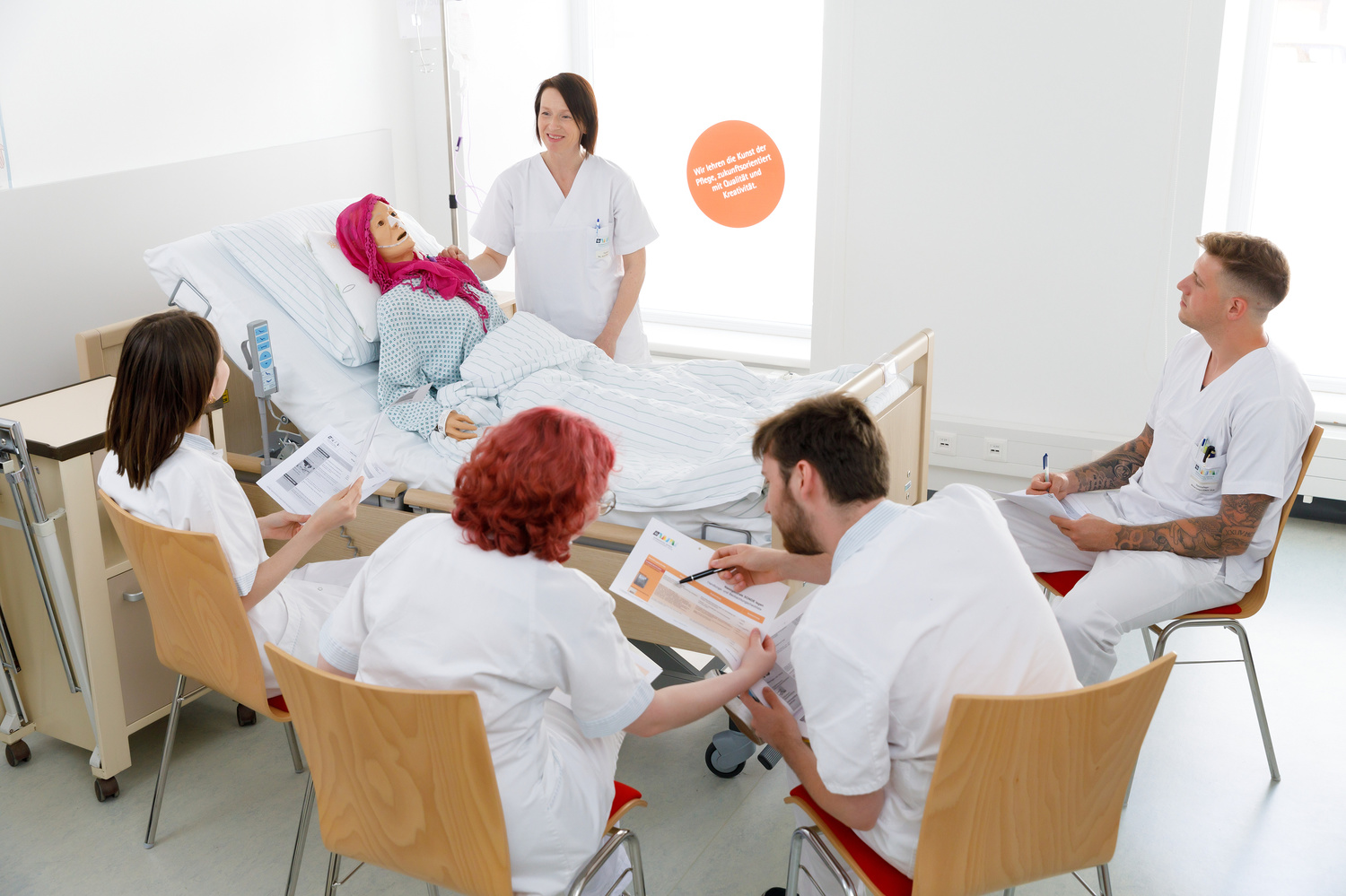 Die Ausbildung umfasst 3.200 Stunden, davon entfallen mindestens 1.060 Stunden auf die praktische Ausbildung. Die Praktika finden in den operativen und konservativen Fachbereichen sowie in Langzeiteinrichtungen und in der mobilen Pflege statt.