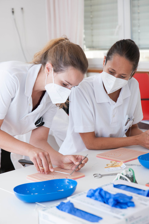 Im Workshop "Knüpf- und Nähkurs" erlernen die TeilnehmerInnen alle wichtigen Grundfertigkeiten, die ein/e ChirurgIn beim Nähen beherrschen sollte. Hierbei werden den Teilnehmern verschiedene Nahttechniken vermittelt, die bei unterschiedlichen Wundsituationen benötigt werden.