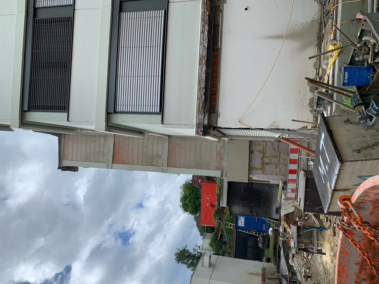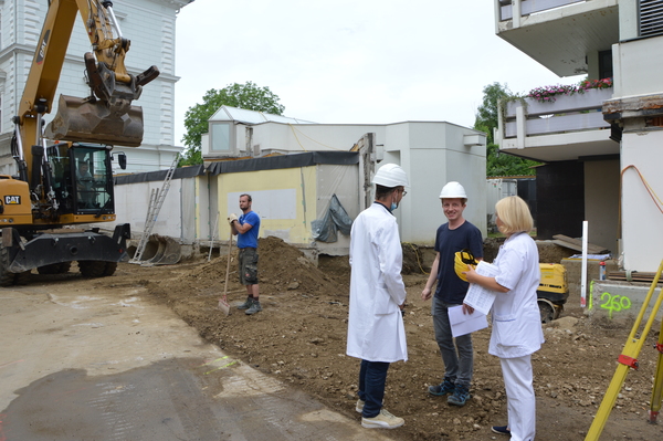 Die Balkone des Personalhauses wurden für das neue Fluchtstiegenhaus demontiert und die Micro Pfähle wurde gebohrt. Die Baumaßnahmen schreiten nach Plan voraus.