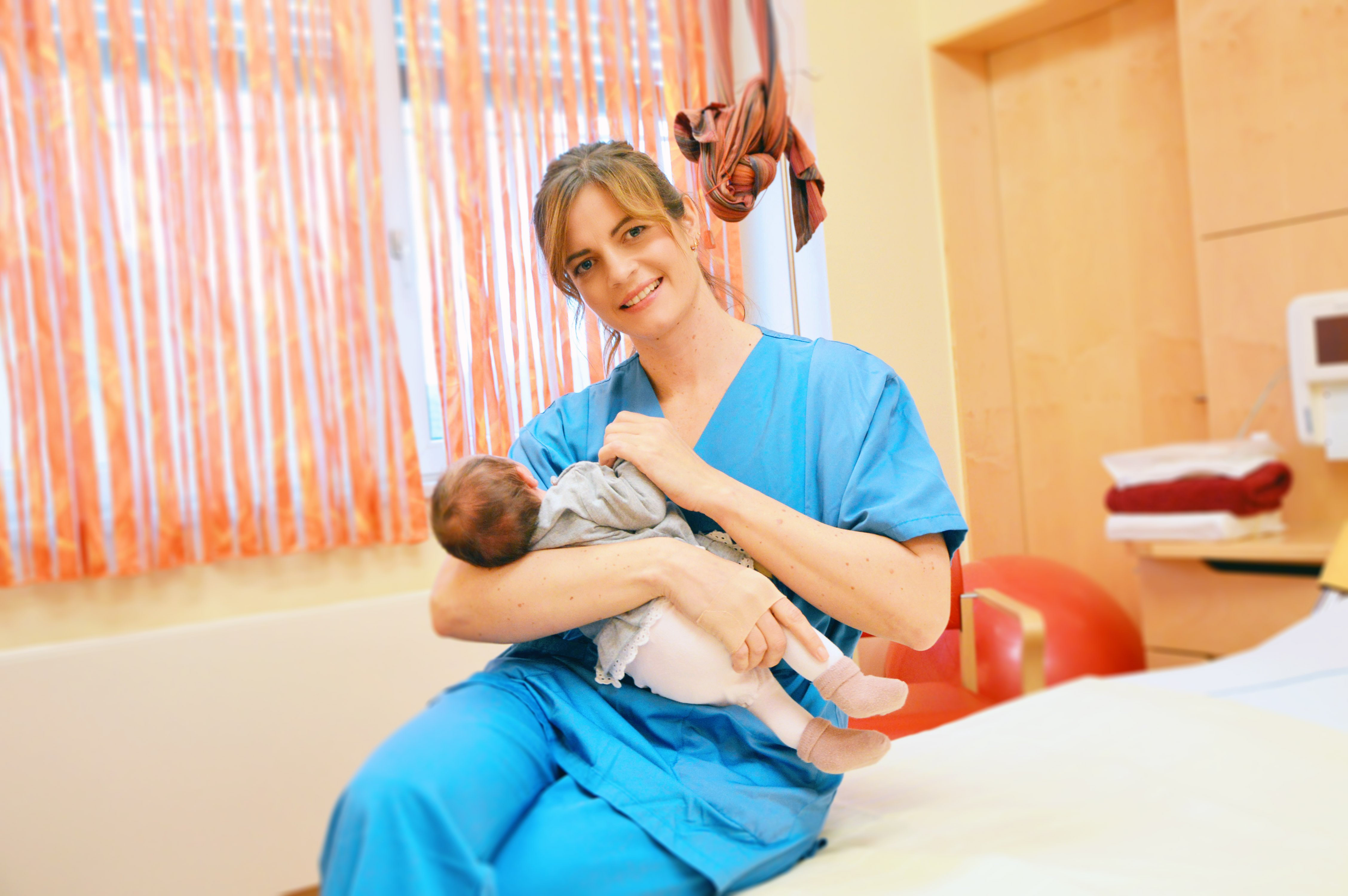 Es sind besondere Augenblicke, die Sabrina Eberhard immer wieder aufs Neue faszinieren. Das Wunder Mensch, die Kraft der Frauen und dieser erste Blick zwischen Mutter und Kind, der die Hebamme auch nach ihrem Dienst hinausbegleitet. Seit vielen Jahren stärkt Sabrina Eberhard als Hebamme am Krankenhaus der Barmherzigen Brüder St. Veit/Glan Frauen während der besonderen Zeit der Schwangerschaft mit professioneller und empathischer Begleitung und gezielter Beratung. Die „Krönung“ ist dann die Geburt an sich, die sie als Hebamme begleitet. Die Zeit nach der Geburt, das Wochenbett, beschreibt Sabrina Eberhard als die „Zeit des gemeinsamen Ankommens und Kennenlernens – eine Zeit, die möglichst ruhig ablaufen soll, sodass sie selbst in die Mutterrolle hineinwachsen können.“ Mit Sabrina Eberhard sorgen am Krankenhaus der Barmherzigen Brüder St. Veit/Glan 17 Hebammen dafür, dass Schwangere selbstbestimmt in einem geschützten, sicheren Rahmen gebären können. Für Sabrina Eberhard war bereits während ihrer Hebammenausbildung im Klinikum Klagenfurt klar, dass sie ihren Traumjob gefunden hat. Seit 2008 und nach ihrer Ausbildung zur Hebamme im Klinikum Klagenfurt, ist sie auf der drittgrößten Geburtenstation, jener in St. Veit, tätig. Eine bewusste Entscheidung wie sie heute sagt: „Die umfassende, sehr individuelle Betreuung der Familien, die Begleitung auf Augenhöhe, das Fördern der Kraft und des Vertrauens der Gebärenden in sich selbst, sind das was den Beruf so einzigartig macht. Wenn sich Frauen gut aufgehoben fühlen, spricht sich das herum.“ Dementsprechend beliebt ist auch die Geburtenstation in St. Veit/Glan.