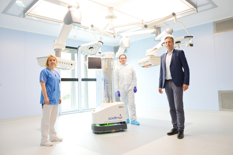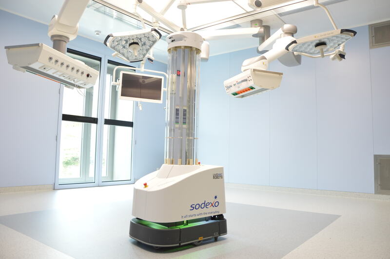 Klinische Studien haben gezeigt, dass eine UV-C Desinfektion mit dem Desinfektionsroboter, den Sodexo`s Partner UVD Robots entwickelt hat,pathogene Keime – sprich Mikroorganismen mit krankmachenden Eigenschaften – um mehr als 96% deaktiviert. Zudem wird die Zahl der in der Luft befindlichen Mikroorganismen ebenso deutlich reduziert. Es handelt sich um ein validiertes, dokumentiertes Verfahren.