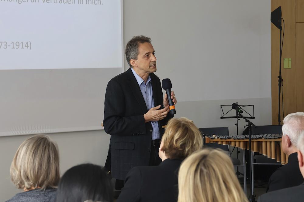 Am Vormittag beleuchtete Univ.-Prof. Dr. Reinhold Esterbauer in seinem Vortrag „Lebenskompass Hoffnung. Zum Zusammenhang von Zukunft und Hoffnung“ die theologische und anthropologische Tiefendimension des Hoffnungsbegriffs. Hoffnung, so Esterbauer, sei nicht mit einfachem Optimismus zu verwechseln. Sie garantiere keinen guten Ausgang, verleihe aber die Gewissheit, dass verantwortliches Handeln Sinn hat – gerade unter unsicheren Bedingungen. Und „Hoffnung bewährt sich auch dann, wenn es schlecht ausgeht. Sie trägt eine Grundüberzeugung in sich: Das was ich tue ist gut und sinnvoll.“
